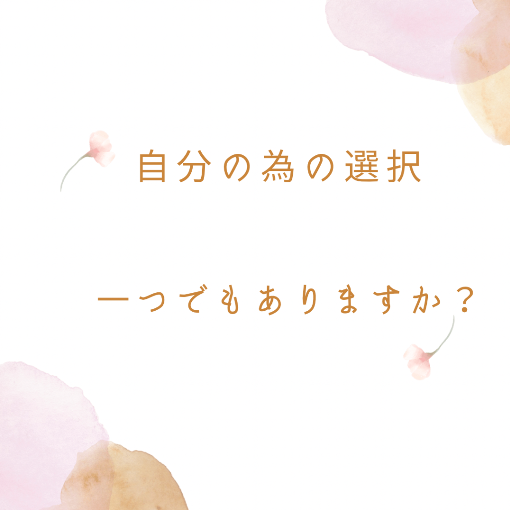 "自分の為"だけの選択をプラスしてみましょう。